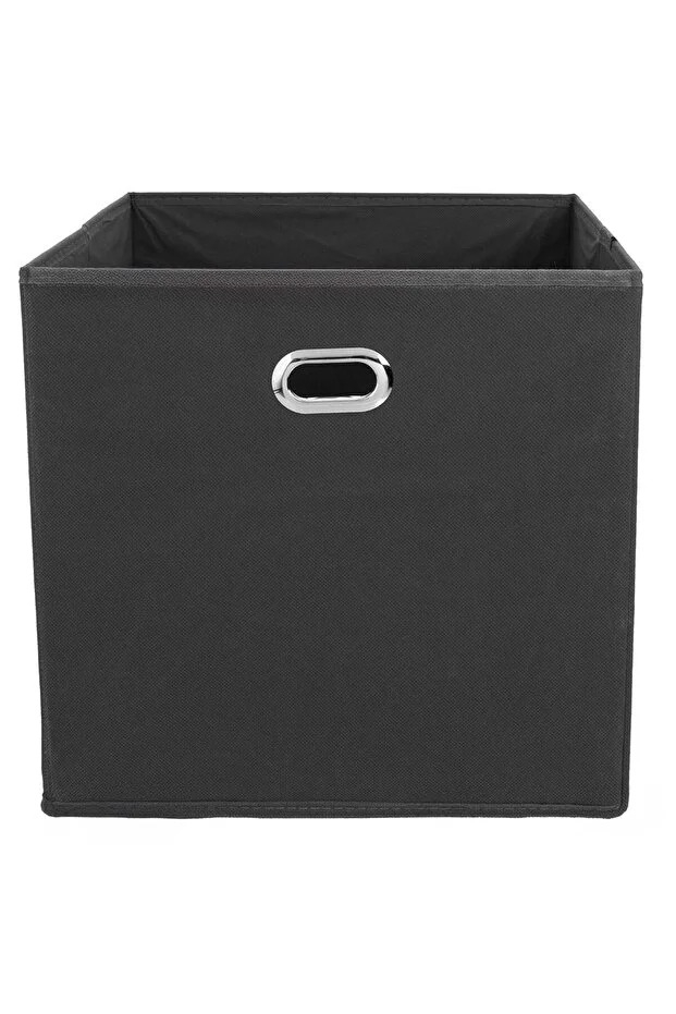 Cutie de depozitare textila in culoare antracit, prevazuta cu inel metalic pentru manevrare usoara. Modelul este fara capac si este ideal pentru organizarea obiectelor mici, accesoriilor, documentelor, CD-urilor sau produselor de birou. Poate fi folosita in living, dormitor, baie sau spatii de birou, fiind compatibila cu majoritatea rafturilor modulare de tip cub.