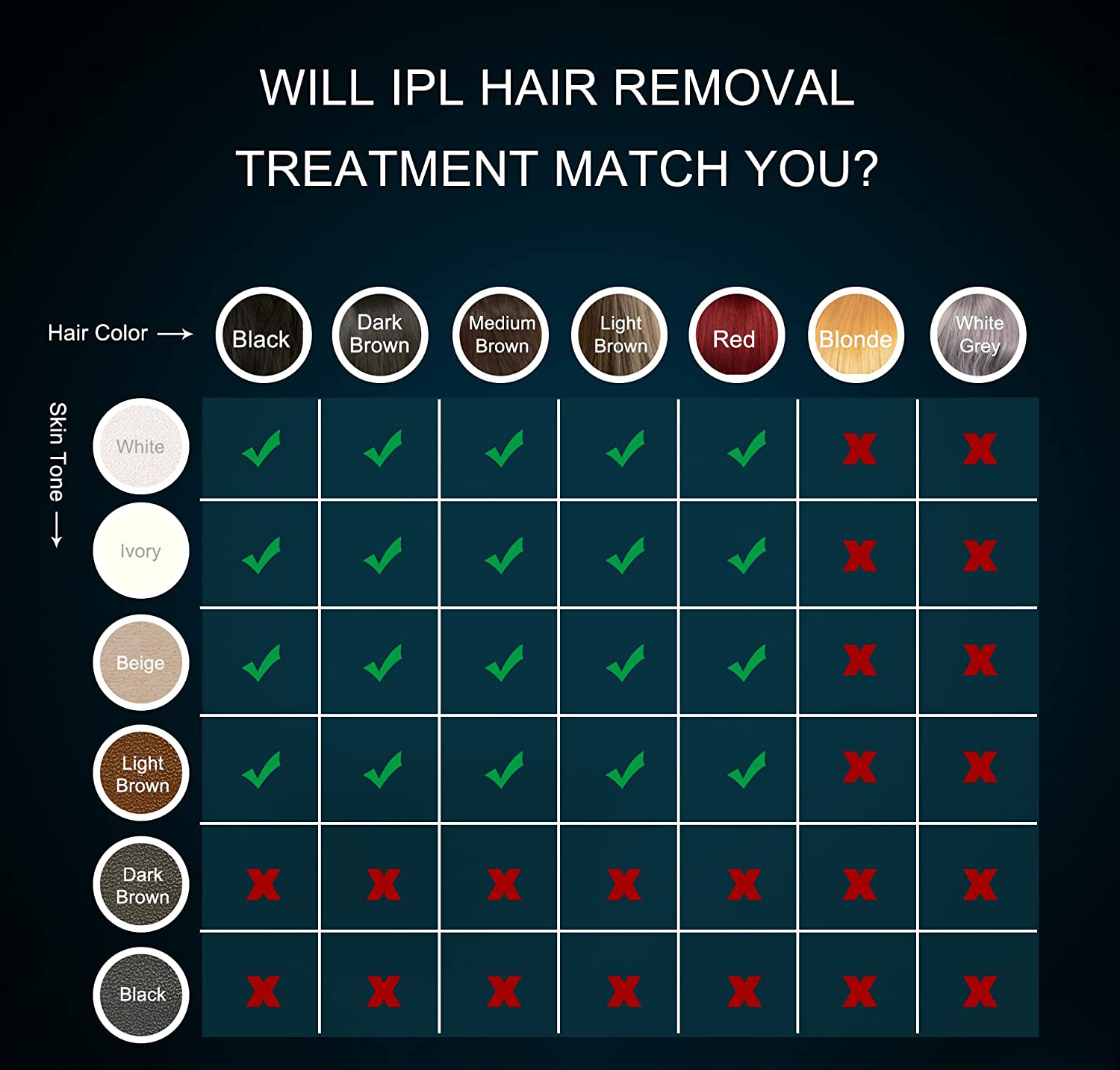 Acest procedeu variaza de la o persoana la alta in functie de varsta, grosimea firului de par, tipul de piele. Cele mai bune rezultate se vor vedea la un individ cu tonul pielii deschis, firul de par subtire si inchis la culoare. In functie de acest criteriu se va selecta treapta de putere.